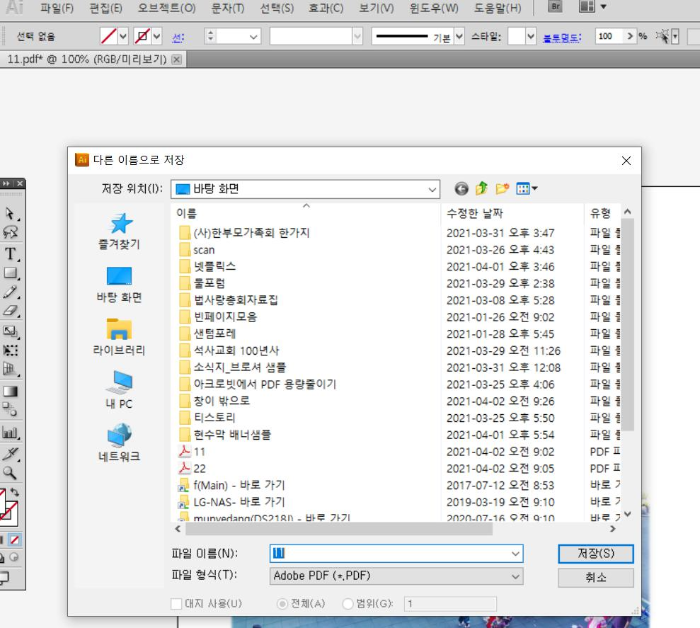 그러면 아래 그림처럼 다른 이름으로 저장 활성 창이 전체 다 보입니다.
